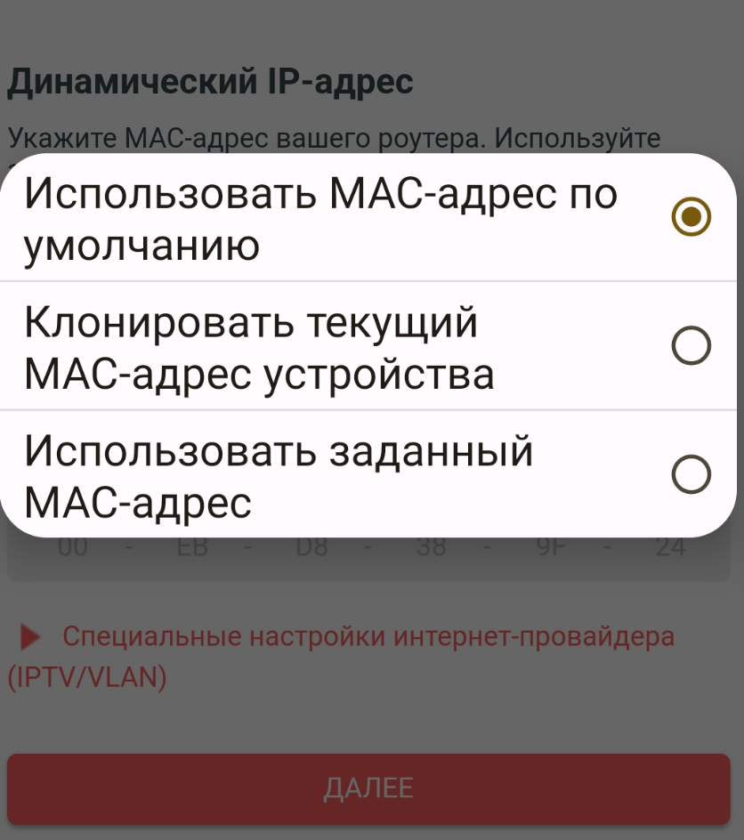 7. Проследите, чтобы использование MAC-адреса было выставлено в режиме "По умолчанию".