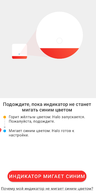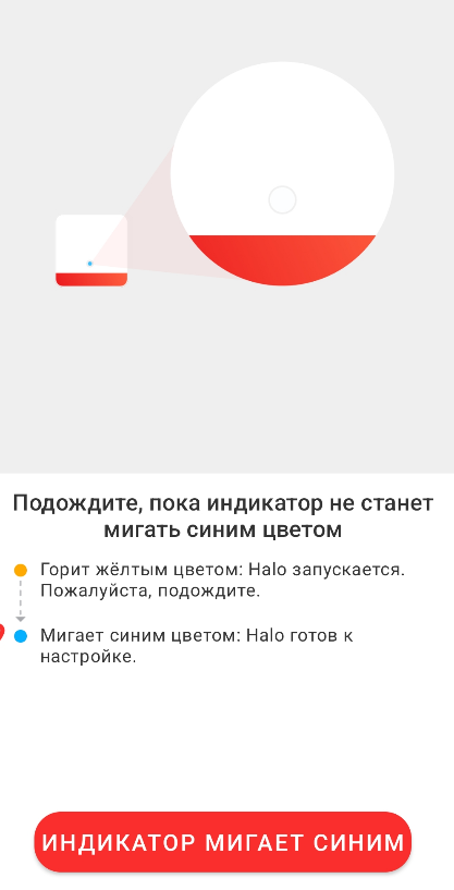 7. Проверьте, чтобы на роутере мигал синий индикатор. Если это так, в приложении нажмите на кнопку "Индикатор мигает синим".