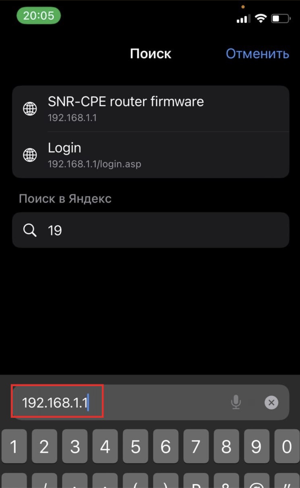 2. После подключения к сети нужно перейти в браузер (Safari, Google Chrome и т.д.). В адресной строке браузера пропишите 192.168.1.1 и нажмите Перейти.