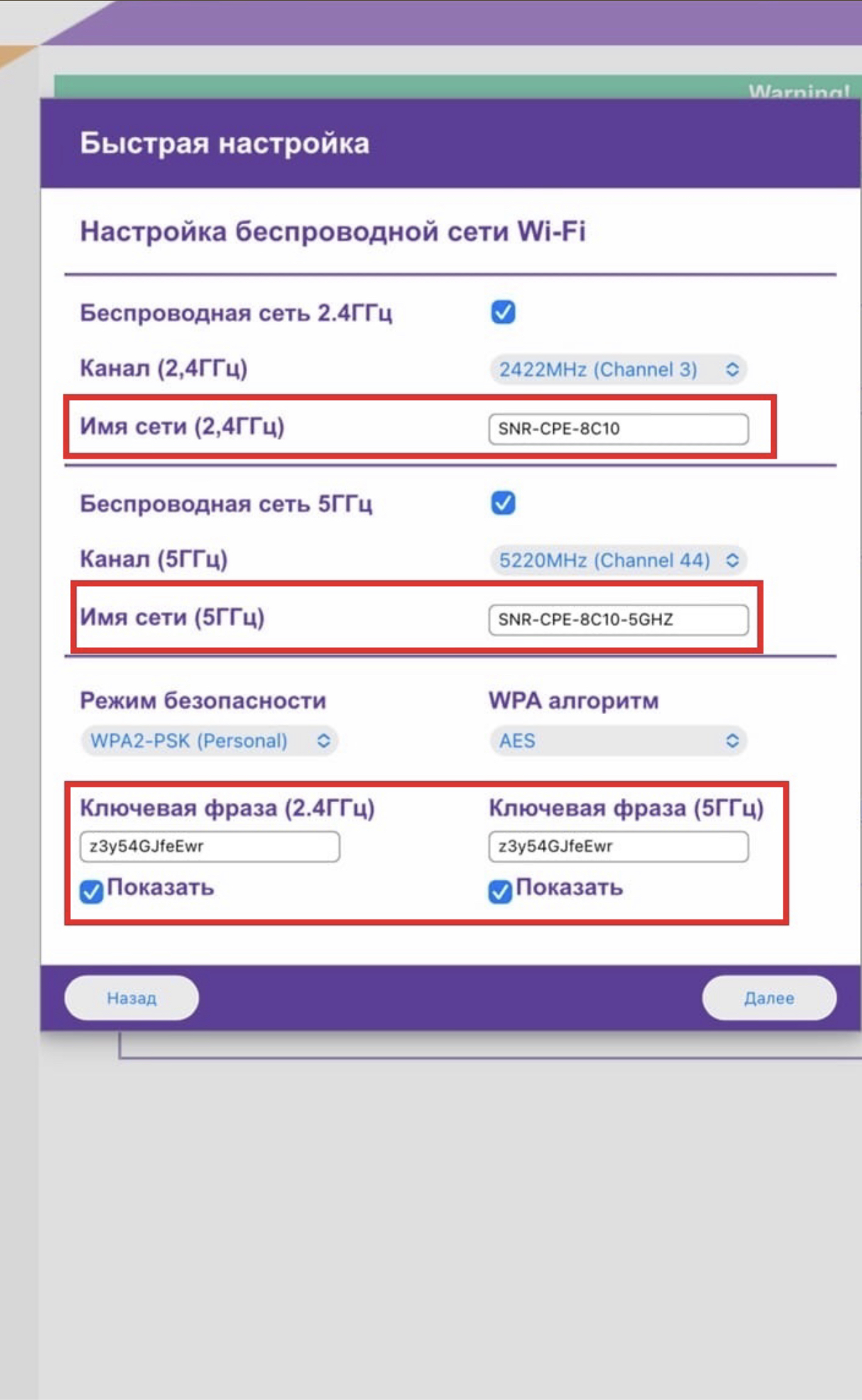 В поле "Ключевая фраза 2.4Ггц/5Ггц" укажите пароли для своих Wi-Fi сетей (минимум 8 символов). Пароль куда-нибудь себе запишите, чтобы не потерять.
