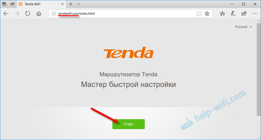 Если подключение к сети сделано корректно, то появится страница, где нужно будет нажать на кнопку "Старт".